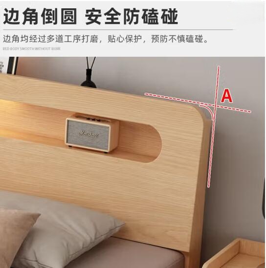 商品名称:英环实木床双人1.8米现代简约1.5米家用主卧大床出租屋床